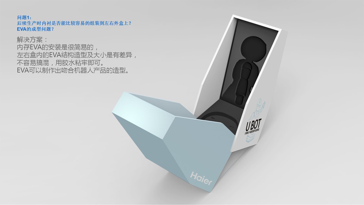 海爾智能機(jī)器人包裝設(shè)計(jì),采用開合式設(shè)計(jì),烘托內(nèi)部產(chǎn)品;用色清新簡(jiǎn)約呼應(yīng)內(nèi)部產(chǎn)品配色。內(nèi)部貼合產(chǎn)品外形的設(shè)計(jì),起到穩(wěn)固產(chǎn)品、增加緩沖的作用。簡(jiǎn)潔醒目的標(biāo)識(shí)信息,將產(chǎn)品信息快速傳遞給消費(fèi)者。
