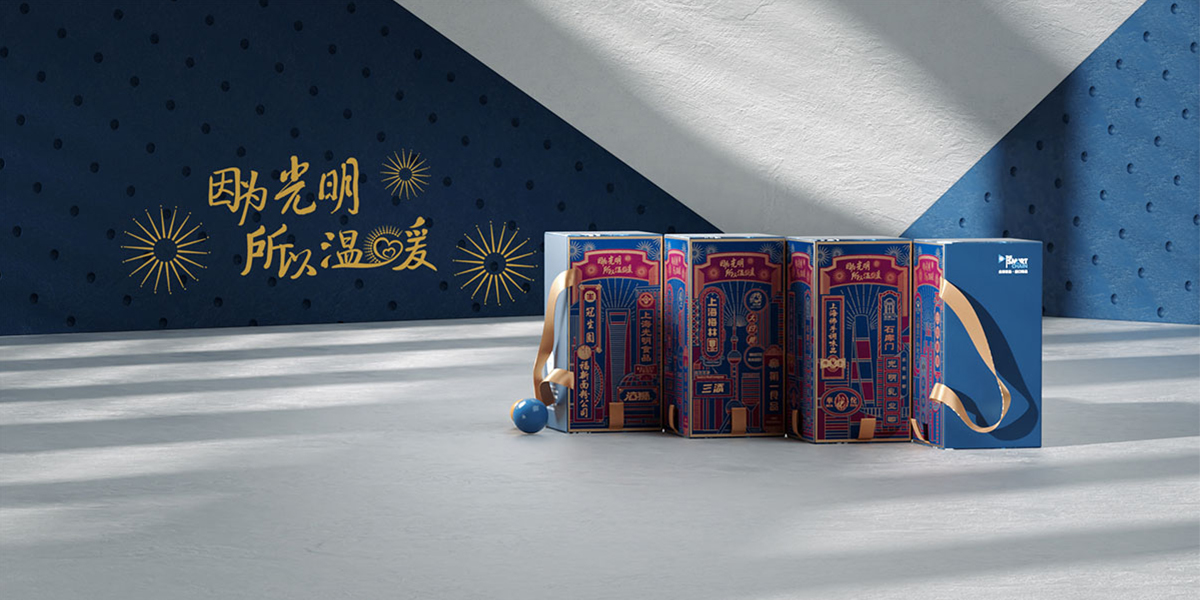 光明食品的老字號(hào)伴手禮盒設(shè)計(jì),融入了光明集團(tuán)旗下現(xiàn)有的老字號(hào)品牌,結(jié)合悠久的海派文化底蘊(yùn),以新穎方式呈現(xiàn),展現(xiàn)“上海味道,上海腔調(diào)”。大膽而又不失復(fù)古的紅藍(lán),在形成強(qiáng)視覺沖擊的同時(shí),凸顯著成熟穩(wěn)重的氣質(zhì)。