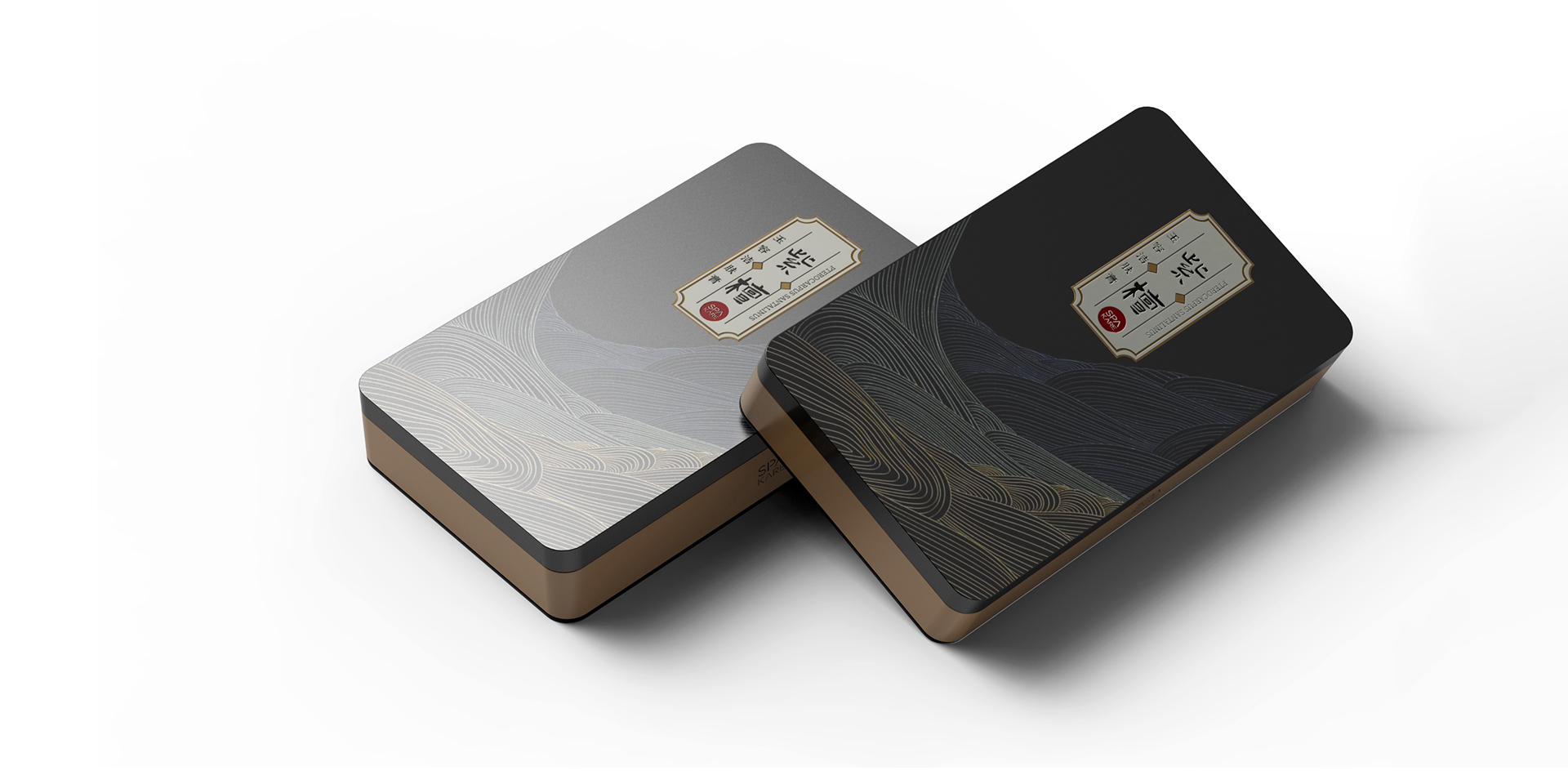 由紫檀本身出發(fā)抽離出時間的符號,用線性的線條與自然山脈的起伏表現(xiàn)之紫檀時間的沉淀。選用中國傳統(tǒng)色進行整體方案規(guī)劃,成熟穩(wěn)重的墨黑色輔以流動的線性裝飾,凸顯了紫檀潔膚膏的天然無添加。