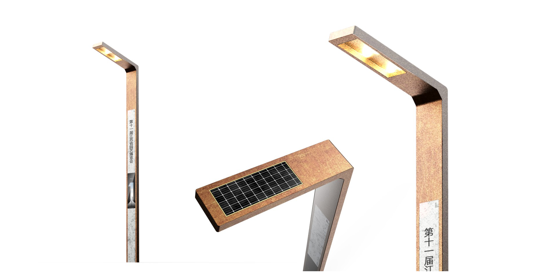 在本方案中,設(shè)計(jì)師充分利用能體現(xiàn)主展館的“工業(yè)之風(fēng)”特色并汲取“城市剪影”的相關(guān)元素,加入一些新的元素,來(lái)完成智慧路燈垃圾箱及導(dǎo)視系統(tǒng)設(shè)計(jì),為游客帶來(lái)豐富且多層次的視覺(jué)美感。