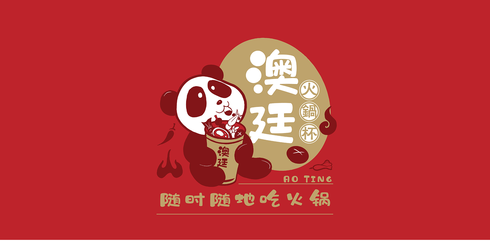當(dāng)熊貓遇上火鍋,當(dāng)國(guó)寶遇到國(guó)粹,碰撞出源自中國(guó)的寶藏——澳廷火鍋杯。澳廷以熊貓為視覺錘與火鍋相結(jié)合,打造年輕可愛的插畫中國(guó)風(fēng)品牌形象,貼合目標(biāo)消費(fèi)群體喜好,易傳播,辨識(shí)度高;色彩運(yùn)用上采用大篇幅的紅色系應(yīng)用,洋溢滿滿熱情與活潑,符合火鍋調(diào)性。