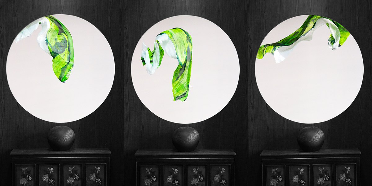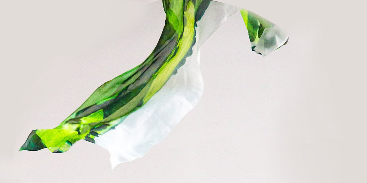 丁偉先生創(chuàng)作的《地平線》蘊(yùn)含豐富的自然景色,依次為設(shè)計(jì)元素,將自然土地的顏色與草地的顏色融合,呈現(xiàn)自然地混合色,同時(shí)結(jié)合絲巾材質(zhì),整體都有自然的飄逸之感。