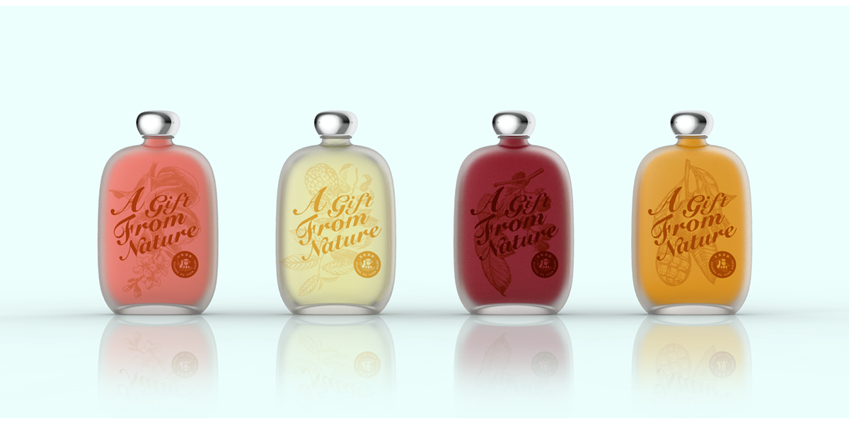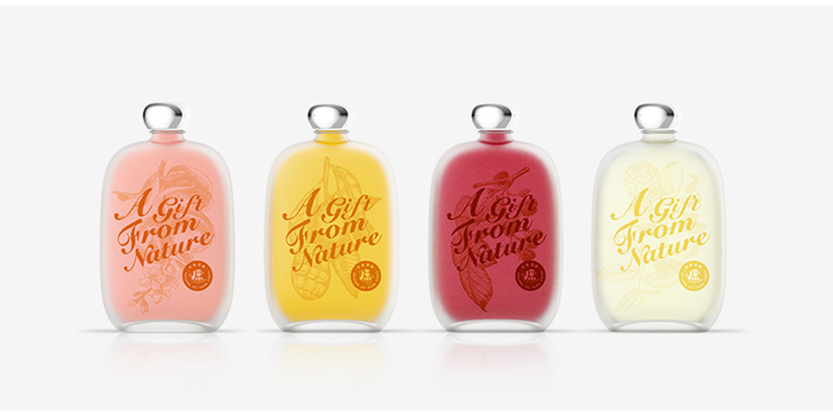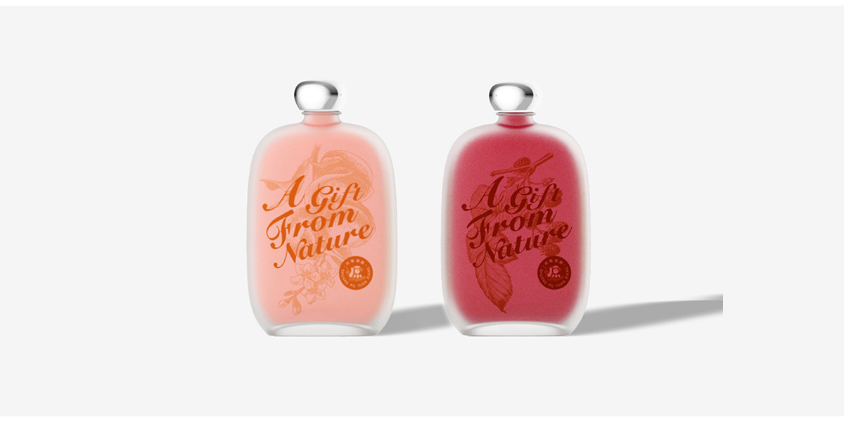 整體包裝設(shè)計(jì),以果酒所對應(yīng)的水果插畫,為背景,表達(dá)果酒原料取之于自然,新鮮健康。整體為輕奢暗紋,花體英文古典優(yōu)雅。藝術(shù)性較強(qiáng)的英文花體為視覺焦點(diǎn),突出品牌slogan-大自然的禮物。品牌logo及簡要產(chǎn)品信息,更易于讓消費(fèi)者快速了解產(chǎn)品。