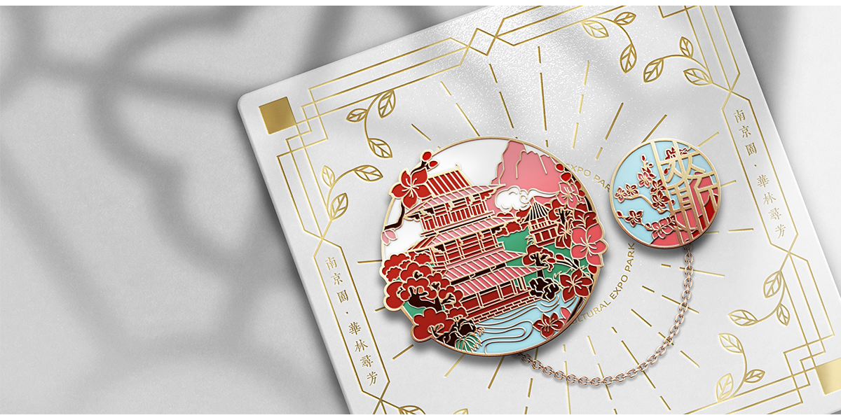 蘇韻薈谷系列徽章,以傳承古典文化和再現(xiàn)歷史名園為核心主題,展現(xiàn)江蘇十三市的傳統(tǒng)園林特色,表達城市傳統(tǒng)園林片段或文化記憶。設(shè)計以胸針作為載體,將文化與潮流相結(jié)合,意在展現(xiàn)十三座江南園林的特色風(fēng)貌,如園林建筑,別樣景致,抑或是地方文化。
