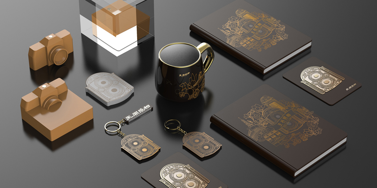 王開照相館作為老字號(hào)品牌,其攝影器材的更替同樣也見證了,上海攝影史的發(fā)展。本次設(shè)計(jì)靈感源自于上世紀(jì)經(jīng)典的照相機(jī),以重色系背景與燙金工藝營造出復(fù)古歷史感,通過提煉將平面語言延伸至周邊產(chǎn)品。