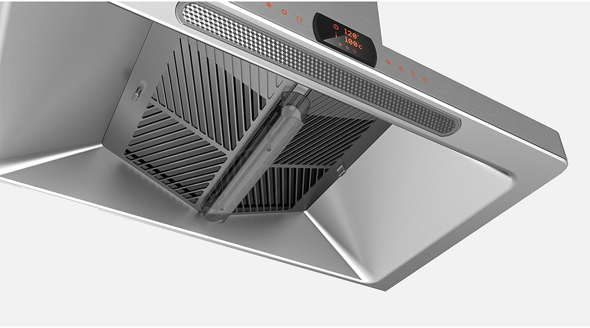 本案采用一體化的設計理念,針對燃氣灶與油煙機的產(chǎn)品特色,在同一平臺框架下進行了系統(tǒng)化設計。創(chuàng)新的平板化一體式設計,既保證吸煙效率,也增強了產(chǎn)品家族感。獨特的圓角造型元素,有效保障了用戶的使用安全。