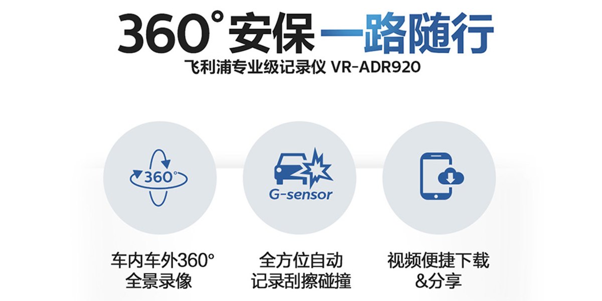 “飛利浦”ADR360 專業(yè)級行車記錄儀將產(chǎn)品造型與產(chǎn)品功能相結(jié)合,兼具了美感與簡約的環(huán)保理念。 以黑色作為產(chǎn)品主題色,搭配高品質(zhì)的玫瑰色/銀色金屬環(huán)與太陽紋,前后兩個攝像頭環(huán)繞其中,強調(diào)產(chǎn)品360度記錄的功能性,為用戶帶來可靠性與呵護感。