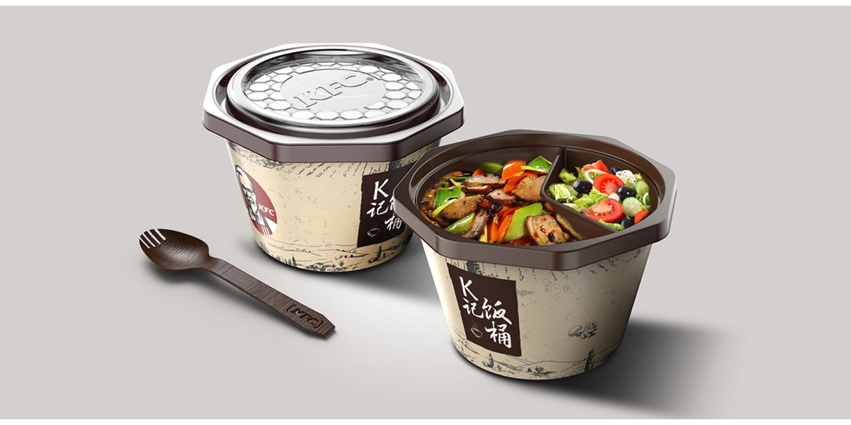 我們選擇八角形作為桶身的主要造型語言,在中國文化中,八角形態(tài)代表著合家歡樂、團圓美滿、堅實可靠,這與肯德基期待的產(chǎn)品情感訴求相一致。從工程上來說,八角形非常穩(wěn)固,符合餐盒的強度標準,同時八角的形態(tài)也方便消費者拿取餐盤。