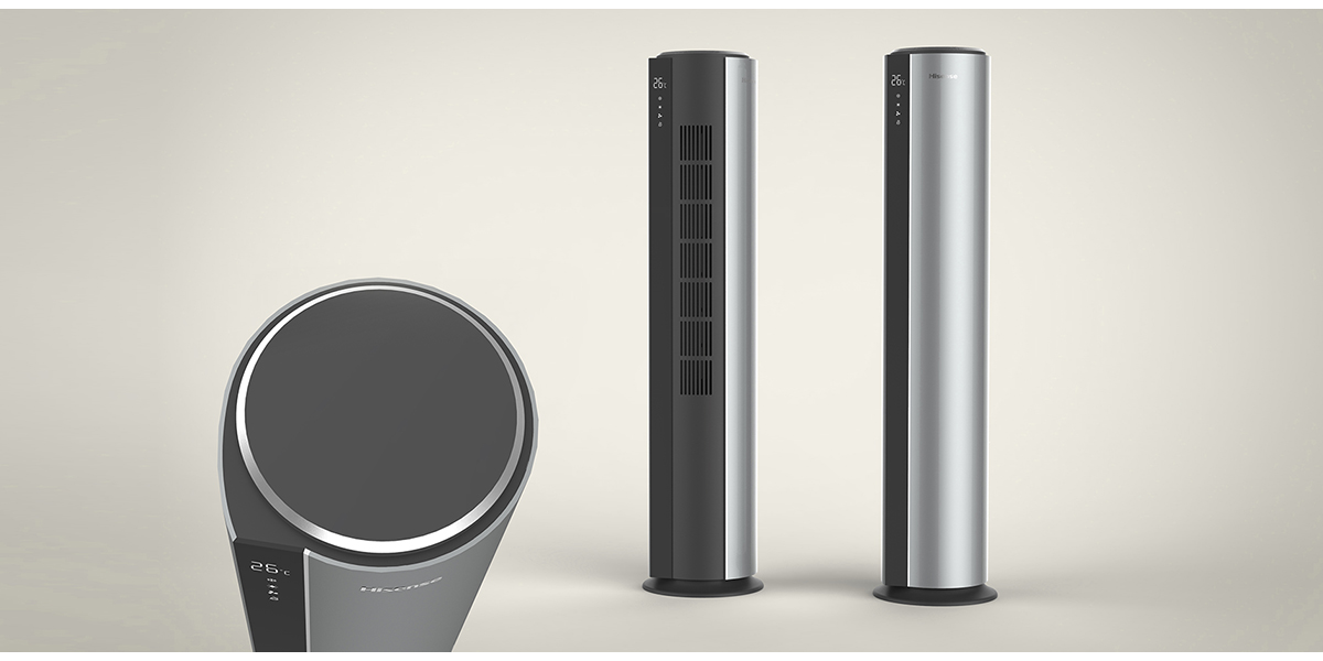 該產(chǎn)品通過外觀設(shè)計(jì)完成空調(diào)狀況可視化:在側(cè)面加入亞克力條,通過燈光來(lái)顯示不同的溫度、出風(fēng)模式,便于用戶快速了解室內(nèi)溫度情況,以及空調(diào)使用模式,提升用戶體驗(yàn)。同時(shí)側(cè)面獨(dú)立顯示的設(shè)計(jì)方式,使得產(chǎn)品與市面千篇一律的立式空調(diào)形成差異性。