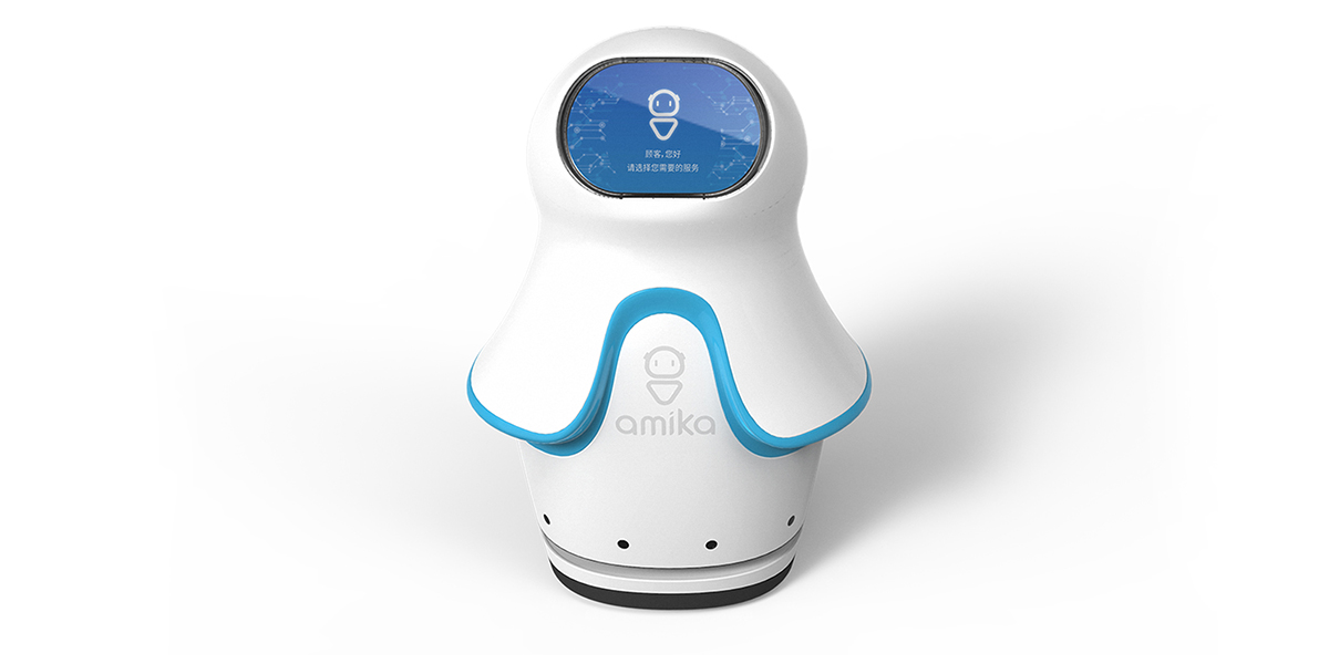 科大智能amika機器人和其他服務(wù)型機器人相比造型更加親和與一體化,在設(shè)計時將防撞條與藍色部分造型結(jié)合,區(qū)別于其他機器人將傳感器隱藏或者外露,而已結(jié)合產(chǎn)品的功能與美感設(shè)計。