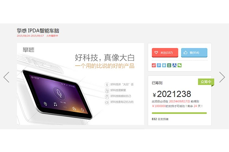 木馬集團幫助擎感智能科技打造跨時代智能車機設(shè)備——擎感 IPDA智能車腦,在京東火熱眾籌中,僅一天募集資金¥2,021,237元支持!