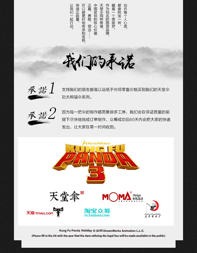 《功夫熊貓3》是《功夫熊貓》系列的第三部電影,該片將于2016年1月29日在中國(guó)和北美地區(qū)首映。于此同時(shí),在淘寶眾籌以及手機(jī)淘寶各大頁(yè)面上,一大波功夫熊貓系列的衍生產(chǎn)品也拉開了眾籌銷售的序幕。