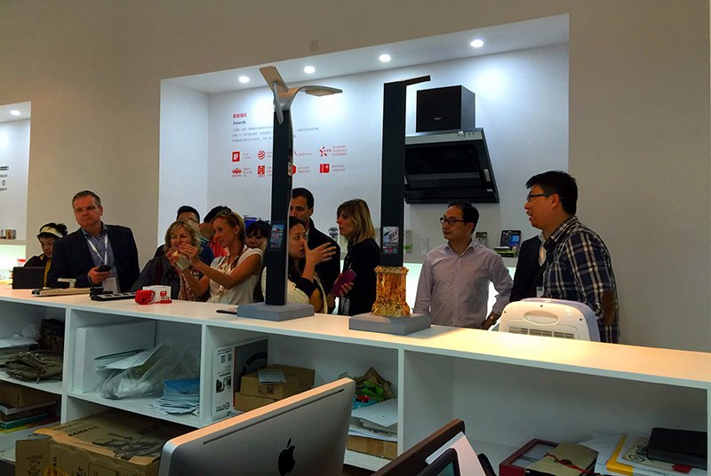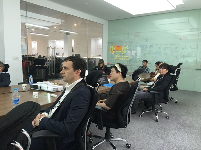 4月29日下午,上海交通大學(xué)設(shè)計趨勢研究所所長傅炯副教授帶領(lǐng)法國KEDGE商學(xué)院MBA學(xué)生一行12人來到M50參觀木馬設(shè)計,在木馬設(shè)計主管許俊杰先生的帶領(lǐng)下參觀了木馬近期的優(yōu)秀設(shè)計作品。