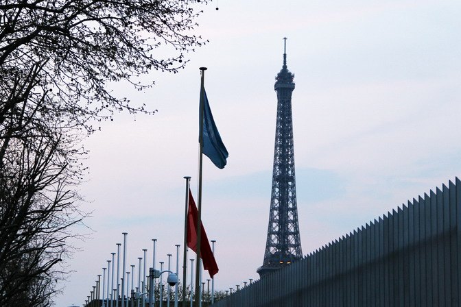 紅旗飄蕩在巴黎上空,慶祝中法建交50周年。