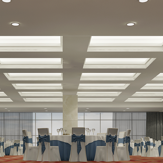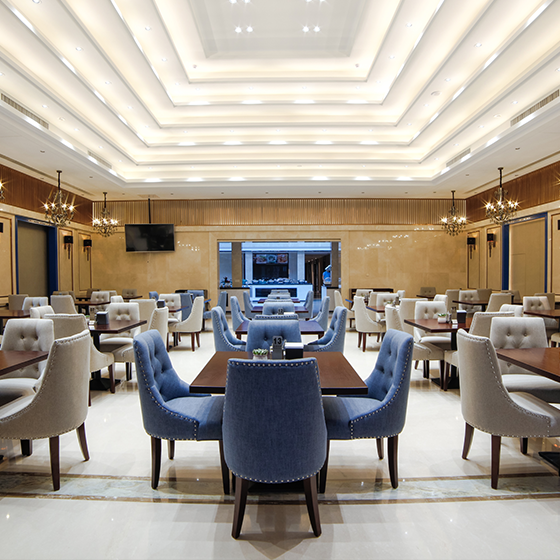 本案設計整體商務簡約,體現(xiàn)出酒店該有的氣場與格調(diào)。設計裝修布局靈活,在燈光選擇上設置多種照明,在滿足正常用餐基本照明需求的同時還在舞臺燈光上做了特殊設計,在多媒體設備上充分考慮多功能使用的可能性,滿足商務宴會、商務會議、婚禮等多場景需求。