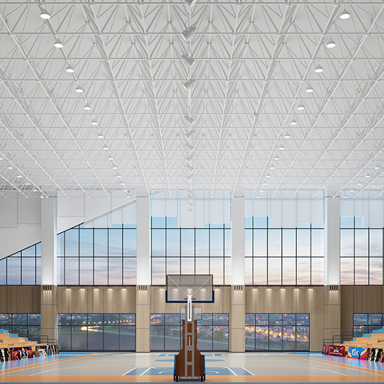 本籃球場內(nèi)除了按照國際籃球聯(lián)合會制定的各區(qū)間設計標準進行,在設計之初還充分考慮到燈光、配置等因素,并通過不同的元素點綴支撐整體建筑,且選擇了具有運動、活力的色調(diào),以表達此籃球運動的魅力。
