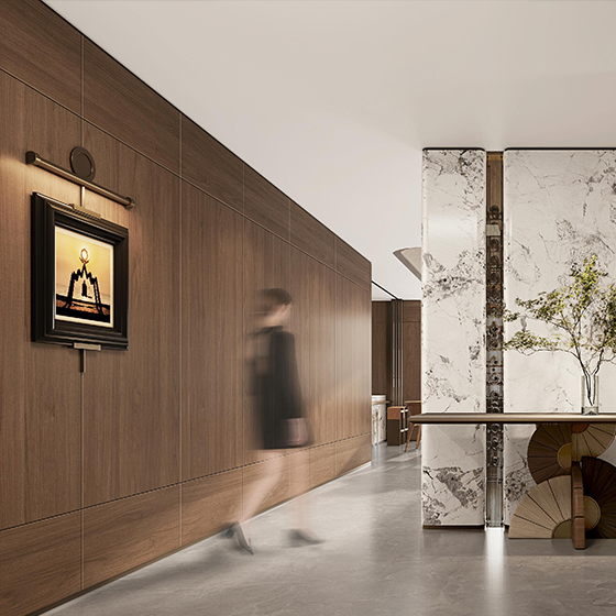 本案是自然與溫暖的交匯相融,讓整個營銷中心呈現(xiàn)出溫馨、賓至如歸的氛圍,在空間關系上,借助自然元素的融入、光影的調(diào)和,打造出風格明顯卻又相互融合的功能分區(qū),完美實現(xiàn)展示樓盤形象、接待客戶、銷售等功能。