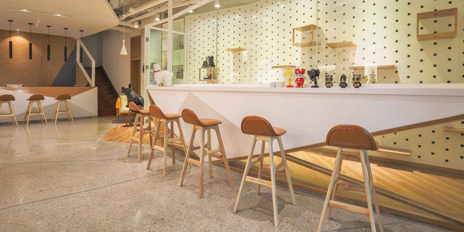 設(shè)計(jì)整體采用暖色調(diào),木地板與地磚混搭,并用寵物玩偶擺件進(jìn)行藝術(shù)點(diǎn)綴,在設(shè)計(jì)之初充分考慮寵物習(xí)性和人方便需求,層次豐富,打造人與寵物和諧共處的生活空間。
