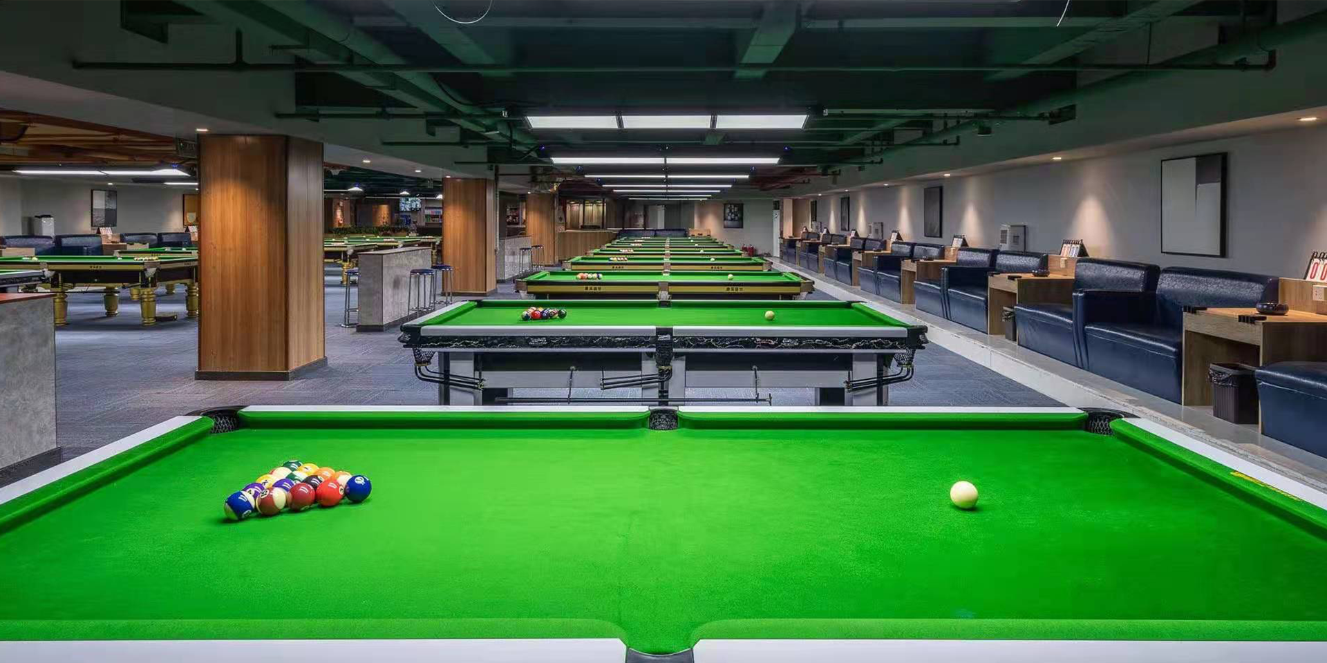 臺球廳的設(shè)計充分考慮顧客的體驗(yàn)與舒適,在每張桌子上方安排造型前衛(wèi)的無影燈,不僅凸顯檔次,更具人性化,在休息區(qū)以花草、盆景做物理間隔,并以亮色沙發(fā)進(jìn)行點(diǎn)綴,達(dá)到畫龍點(diǎn)睛的效果,還設(shè)計了大氣、古樸風(fēng)格的麻將包房,豐富臺球俱樂部的娛樂性。