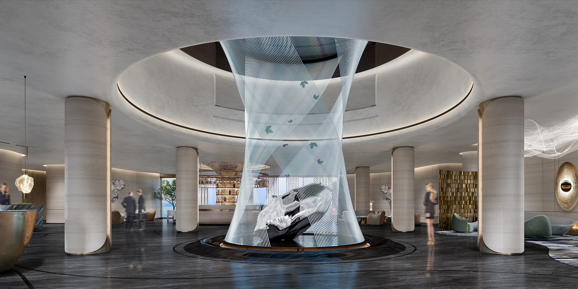 本案酒店位于濱海一側(cè),定位為精品假日酒店,在大堂設(shè)計(jì)上融合海景元素,大量采用波浪線設(shè)計(jì),并在大堂中間設(shè)計(jì)了特殊景觀,起到畫龍點(diǎn)睛作用,并經(jīng)過深入規(guī)劃,完善各類房型,并設(shè)計(jì)了空中自助餐廳、宴會廳、健身房等功能區(qū)域,提升游客居住體驗(yàn)。