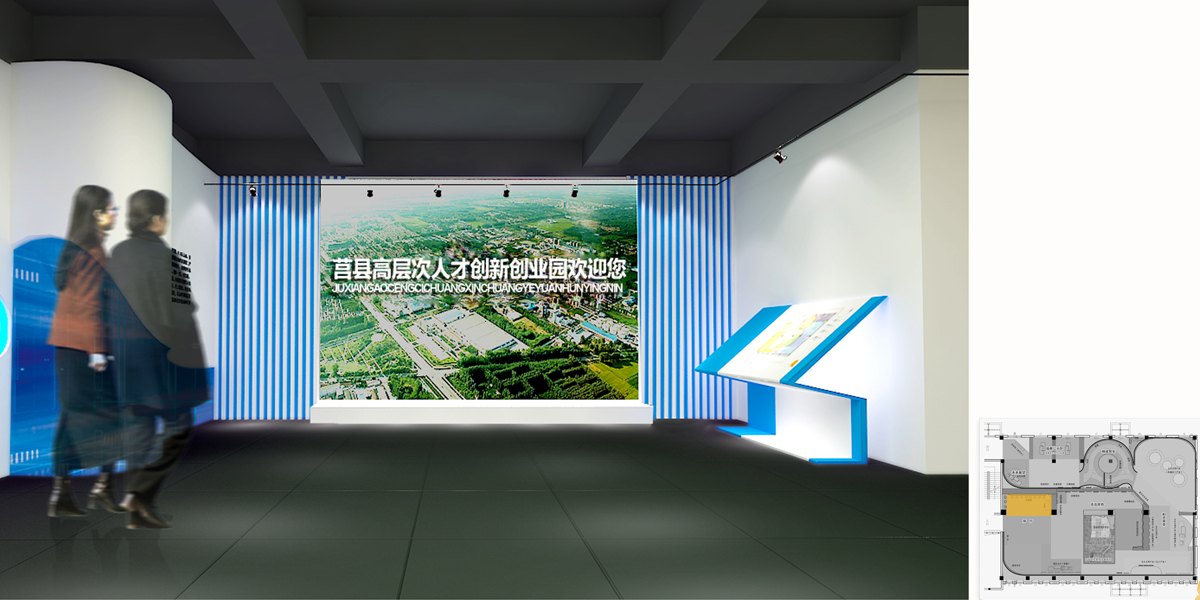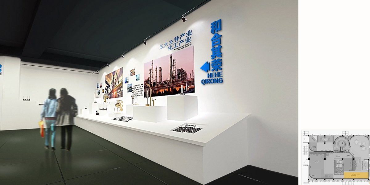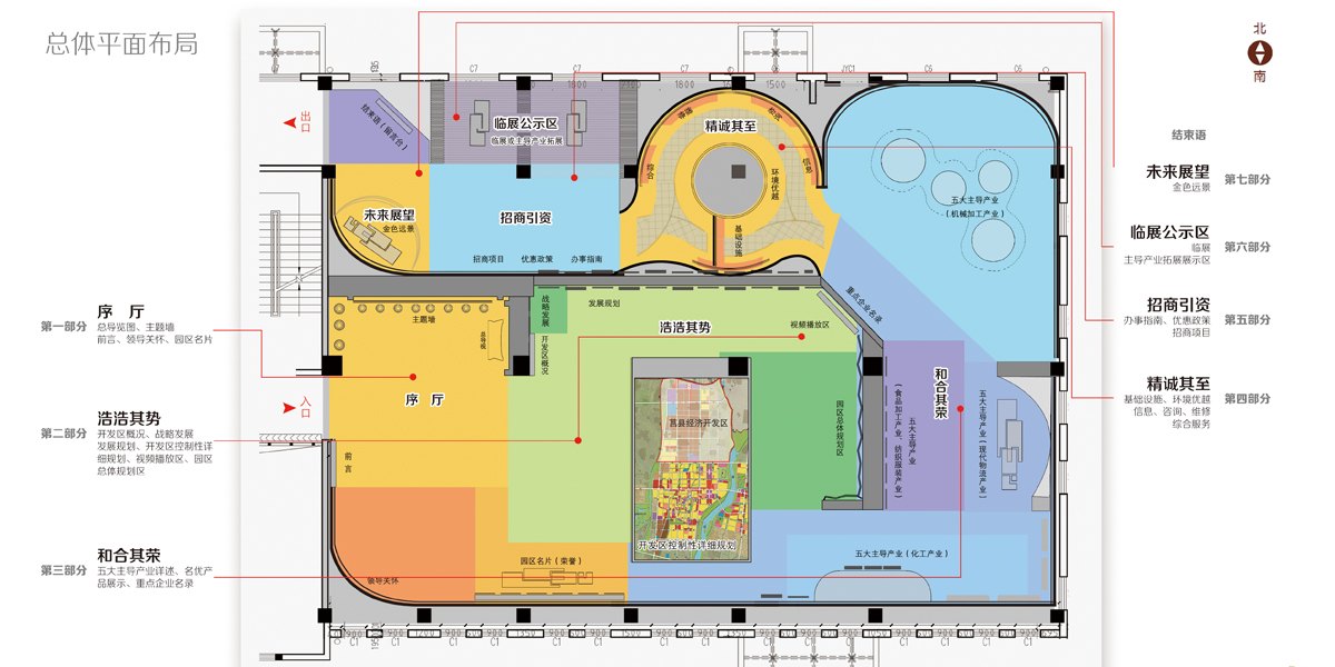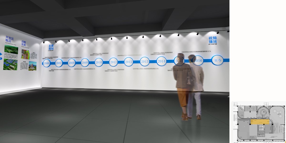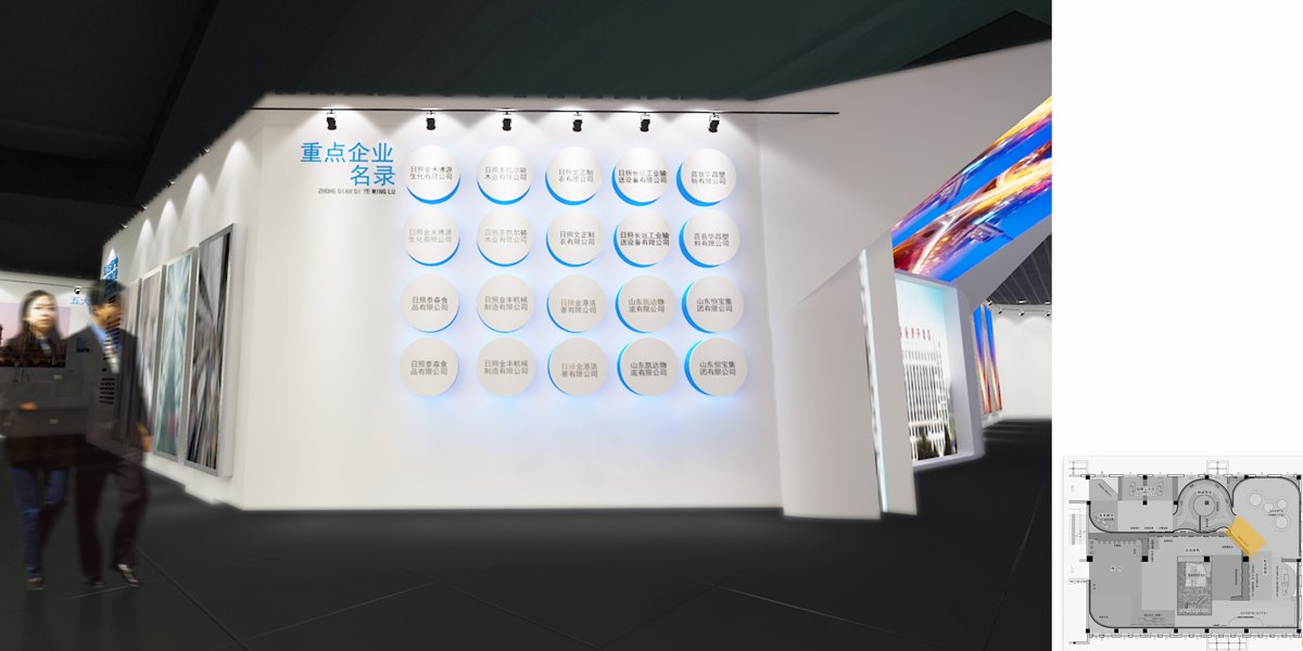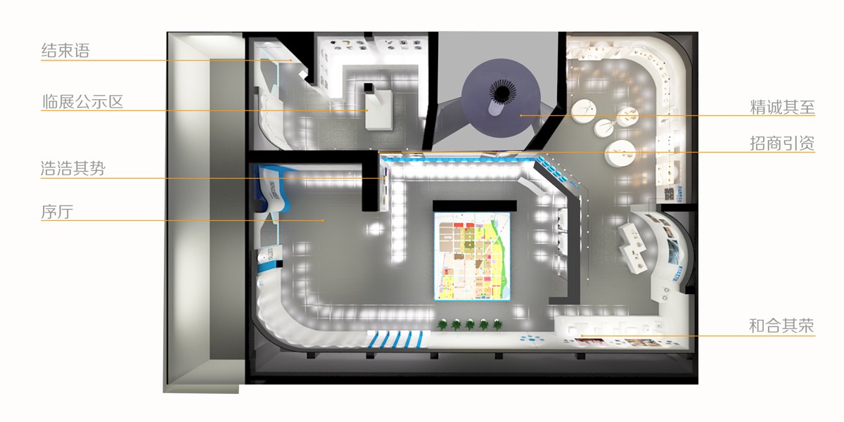 設計以“莒國文化”和“高層次產(chǎn)業(yè)”為創(chuàng)意理念來源,并將其作為展示的主要脈絡。空間流線構成為序廳、浩浩其勢、和合其榮、精誠其至、未來展望等七個部分,瀏覽路線清晰且融合,相互共生。動線規(guī)劃始終圍繞內(nèi)容的有效傳遞和情境體驗展開。
